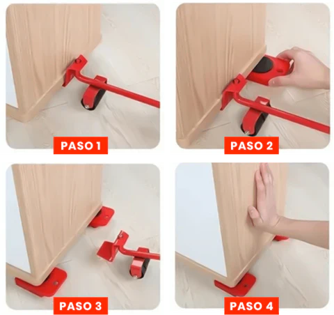 1️⃣ Coloca los rodillos bajo las esquinas del mueble